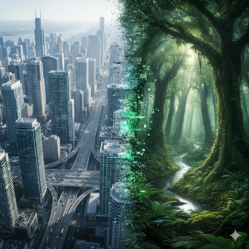 (Görsel: Beton ormanları (şehirler) ile balta girmemiş gerçek ormanların hızlı geçişi)