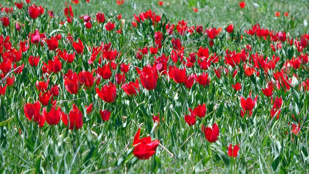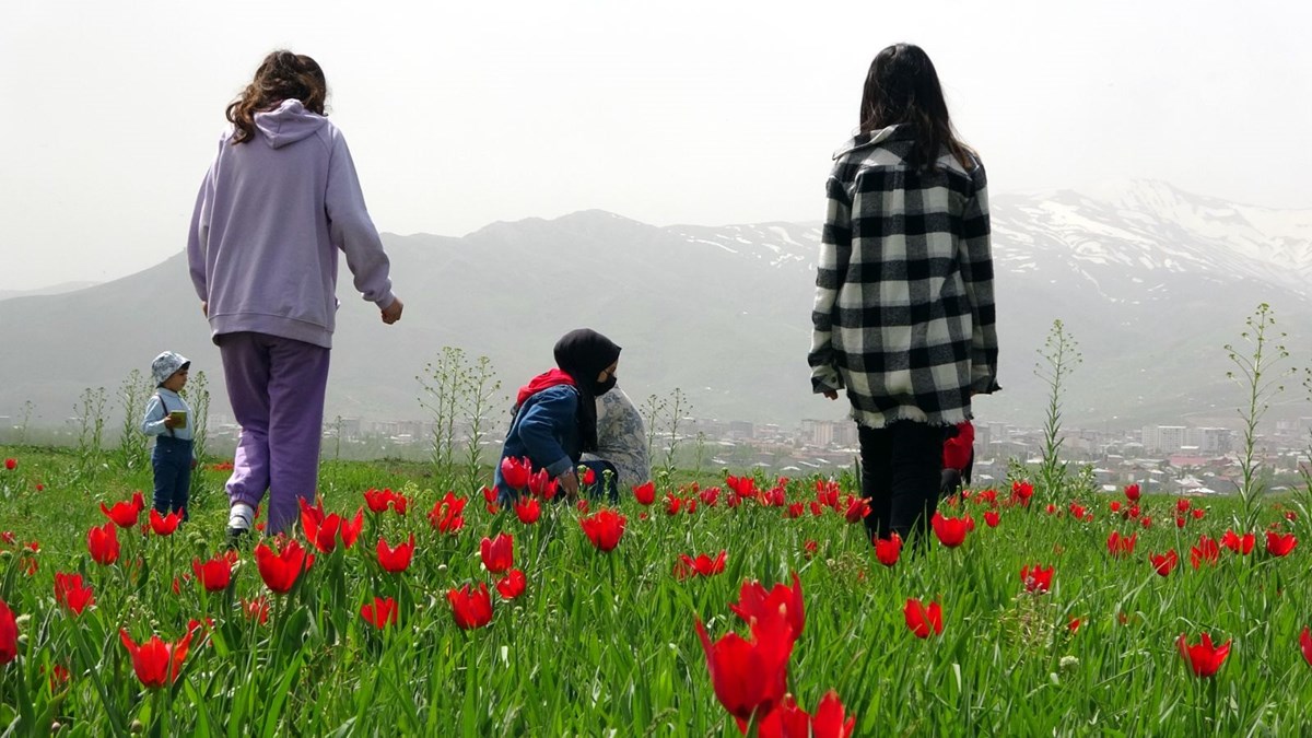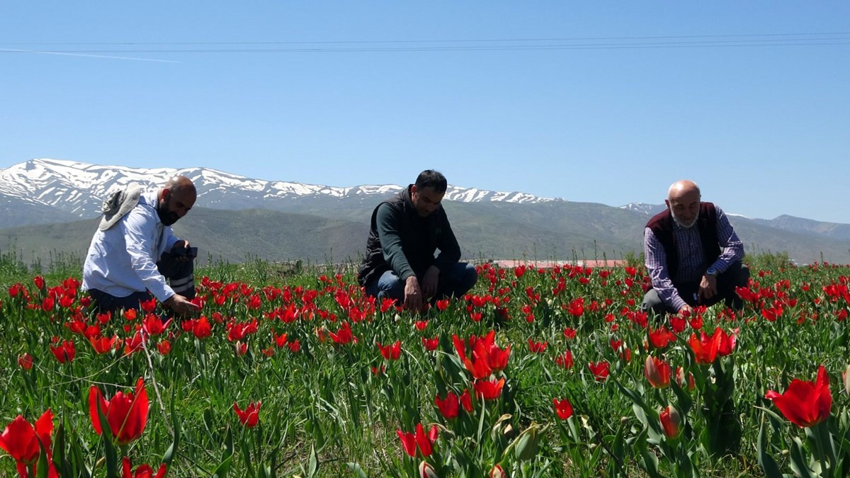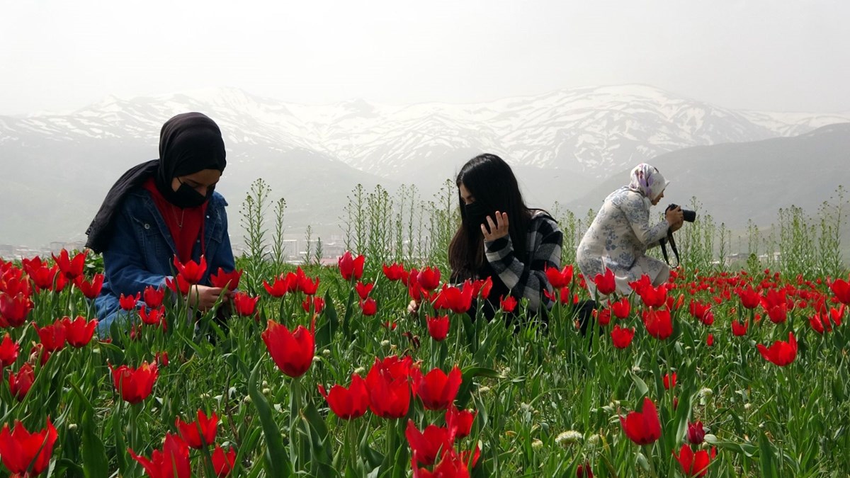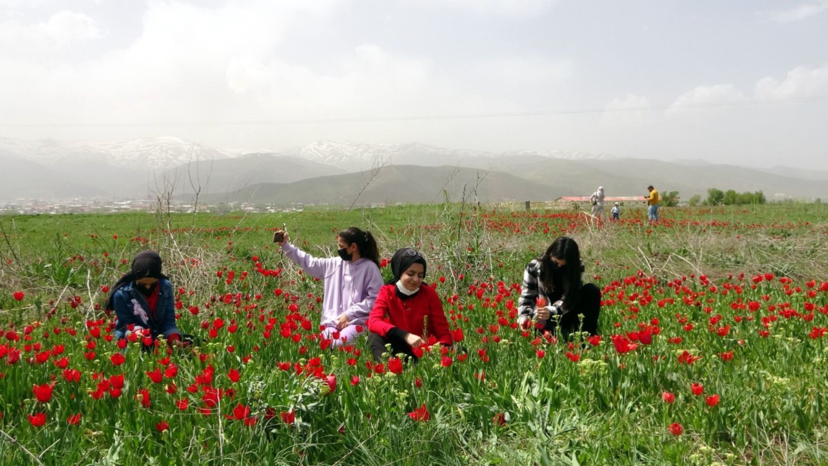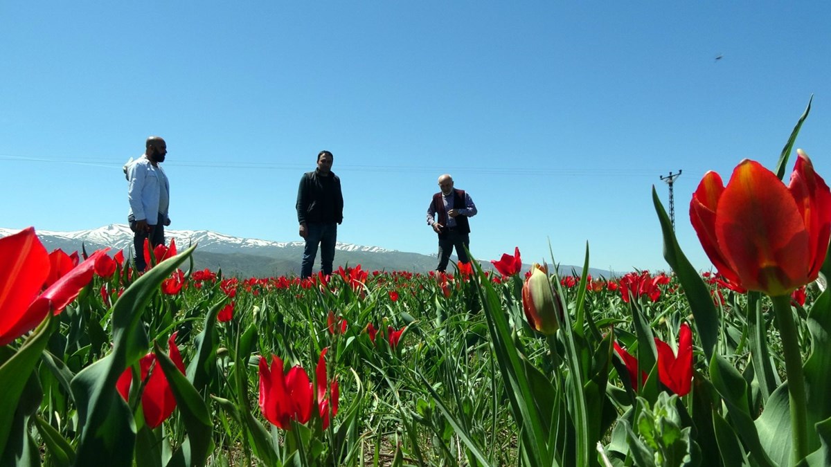 Muş Ovası’nda doğal olarak yetişen ve endemik bitki türleri arasında yer alan Muş Lalesi'nin karlı dağlarla birleşen görüntüleri kartpostallık oluşturuyor.