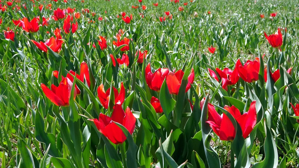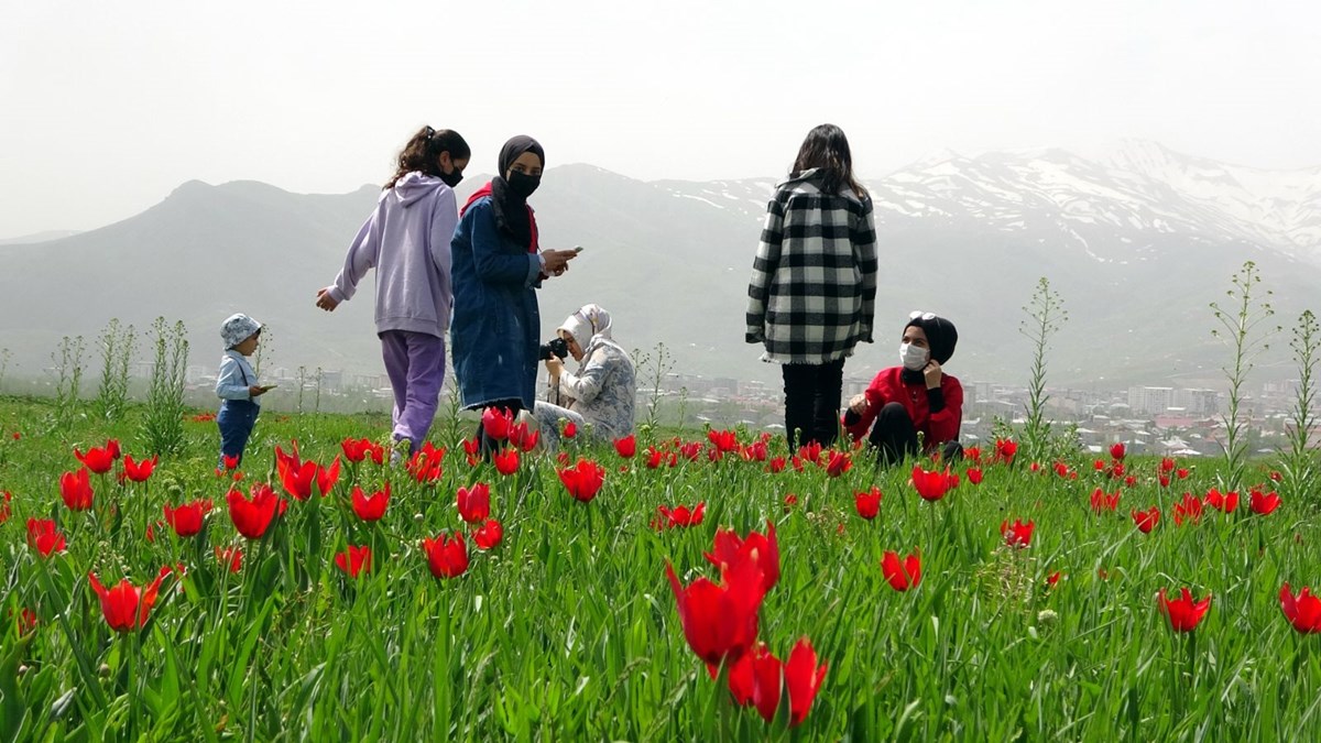 Muş Ovası’nda doğal olarak yetişen ve endemik bitki türleri arasında yer alan Muş Lalesi'nin karlı dağlarla birleşen görüntüleri kartpostallık oluşturuyor.Muş’ta bu yıl erken açmaya başlayan laleler, ovayı adeta kırmızıya bürüdü.Tarım ve Orman Bakanlığı'na bağlı Bitkisel Üretim Genel Müdürlüğü tarafından 2015 yılında “Muş 1071” ismiyle tescillenen Muş Lalesi, eşsiz güzelliğiyle görsel şölen sunuyor.15 ile 20 gün arasında ömrü olan laleler, vatandaşlar tarafından fotoğraflanıyor. Karlı dağlara karşı boy veren laleler, doyumsuz seyir zevki veriyor.Lale tarlasında inceleme yapan Yıldız Alparslan Tarım İşletmesi Müdürü Burhan Çam, “Gördüğünüz gibi dağda kar ovada bahar var. Çok da güzel bir manzara var. Lale ile ilgili çalışmalarımız Muş Alparslan Üniversitesi ile beraber devam ediyor. Ciddi projelerimiz var. Muş Lalesi’nin Muş’un ekonomisine katkı sağlayacak şekilde bir yapılanmaya doğru gitmek istiyoruz. Muş’un sembolü laledir. Her yerde endemik lale çeşitleri var ama Muş Lalesi’nin kendine has bir özelliği var. Lale, genelde her yıl nisanın son haftasında açan ve mayısın ilk haftasında kapanan bir endemik bitkidir. Buraya has bir bitkimiz. Ciddi anlamda buraya hem yerli turist hem de yabancı turist çekiyor” dedi.Lale tarlalarını gezerek fotoğraf çeken vatandaşlardan Zahide Arslan da, “Doğamız uyandı. Muş Ovası güzel lalelerle büründü. Dağlarda halen kar olmasına rağmen ovada bahar havası var. Bizde arkadaşlarımızla beraber fotoğraf çekmeye geldik” ifadelerini kullandı.Vatandaşlardan Semanur Yıldırım ise Muş’un doğal olarak yetişen güzel lalelerini görmek için geldiklerini ifade ederek, “Bu anı ölümsüzleştirmek için fotoğraf çektik. Bu anı kaçırmak istemedik, onun için arkadaşlarla kısıtlamadan önce yeni çıkan laleleri görmeye geldik” diye konuştu.