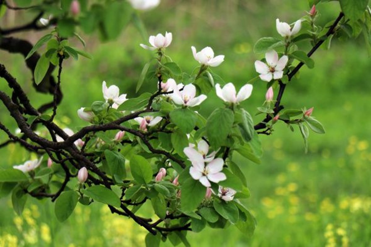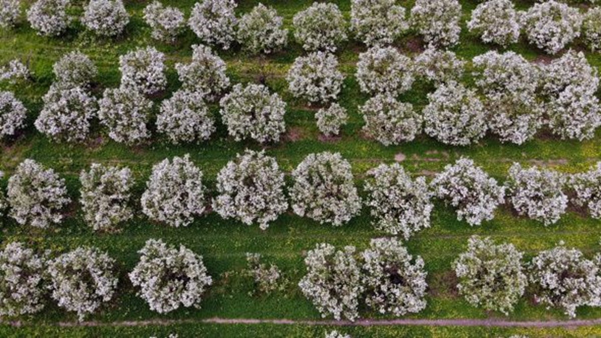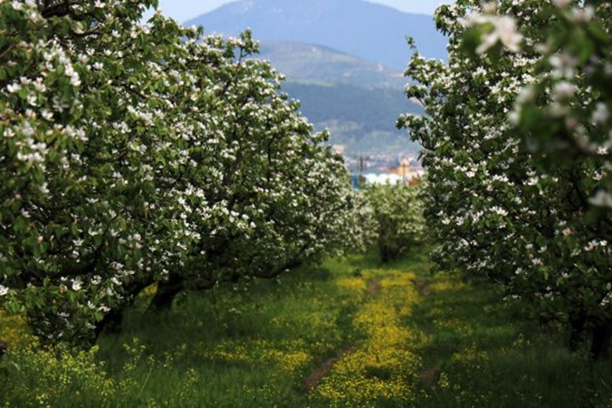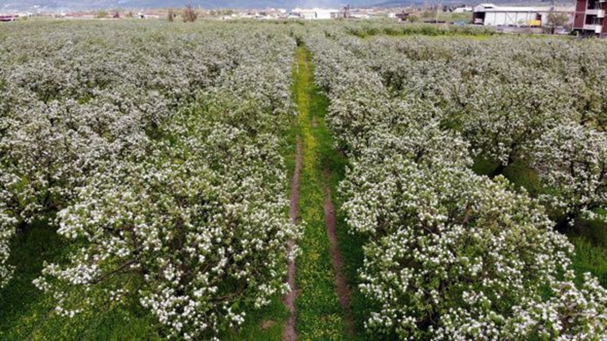Sakarya'da yetiştirilerek Türkiye'nin yanı sıra dünyanın birçok ülkesinde gönderilen ayva ağaçları çiçek açmaya başladı. Görsel şölen oluşturan çiçekler, havadan görüntülendi.