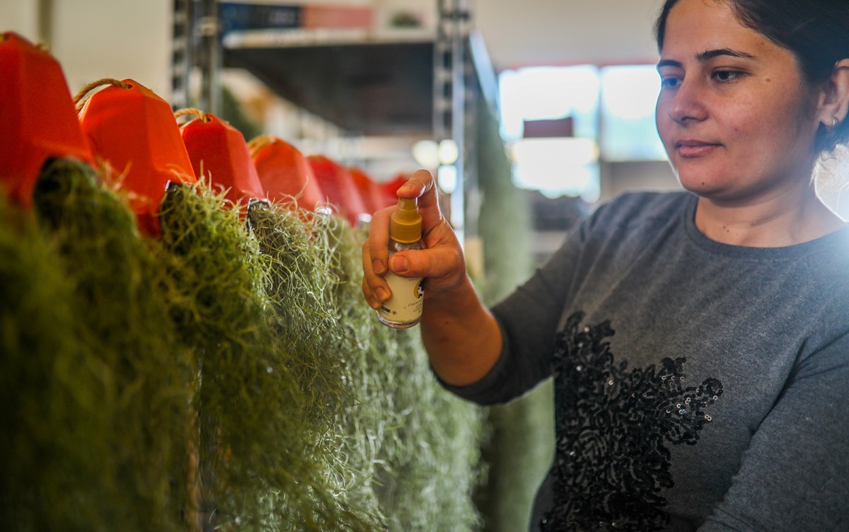 10 bin adet yetiştirilerek değişik dekoratif eşyaların içine konularak satışı yapılan hava çiçeği, toprağa ihtiyaç duymaması nedeniyle böceklenme, sineklenme ve hastalanma riski bulunmuyor.